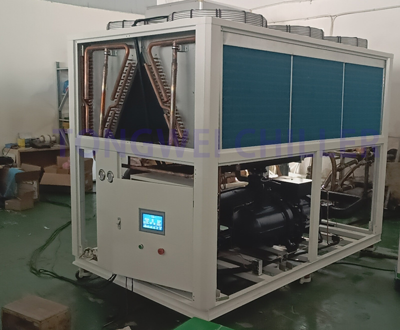 - एयर कूल्ड स्क्रॉल चिलर्स:आम तौर पर इनका सीओपी (प्रदर्शन का गुणांक) कम होता है, लेकिन आंशिक-लोड स्थितियों में अच्छा प्रदर्शन करते हैं।
